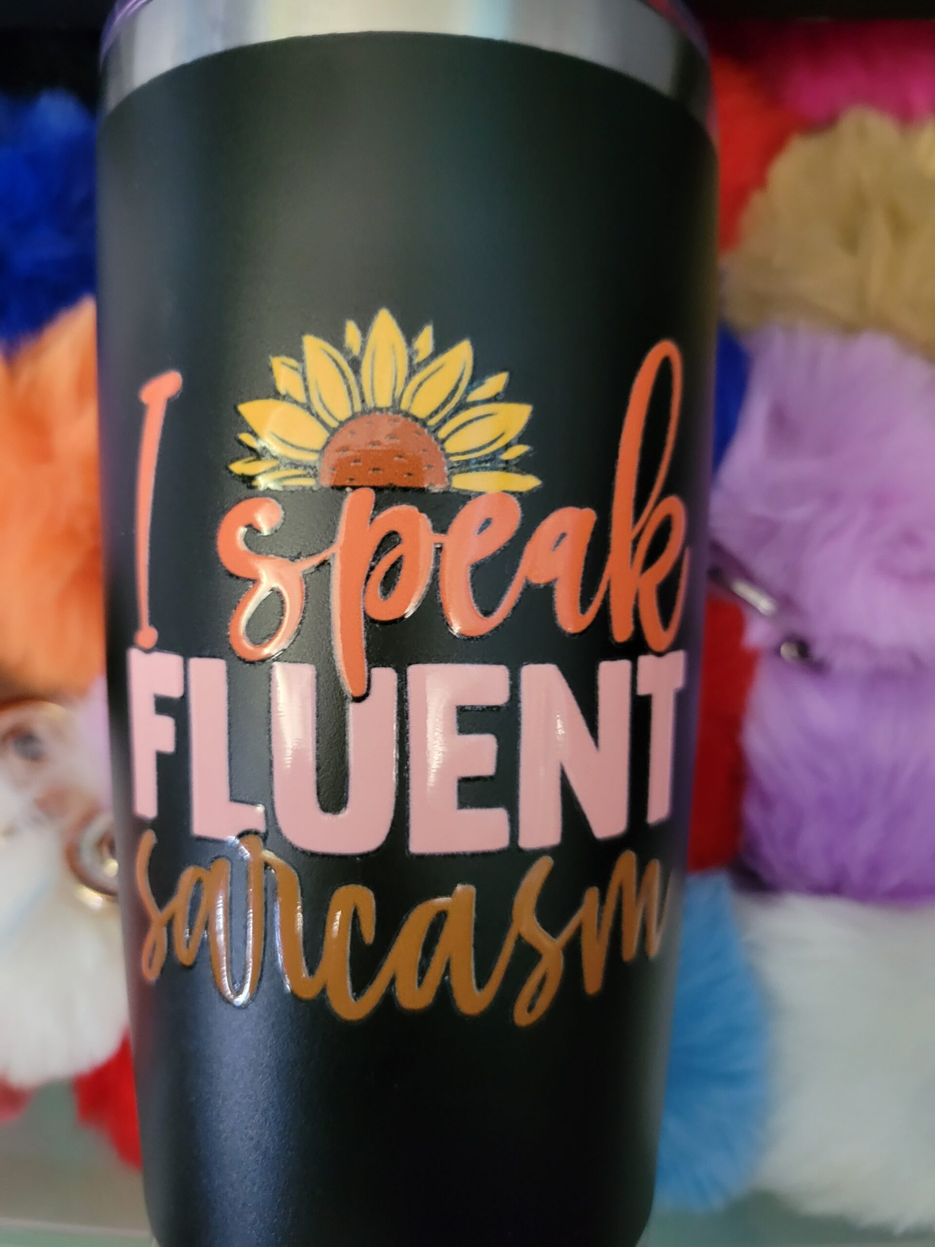 Black 20 ounce stainless steel travel tumbler, I speak fluent sarcasm