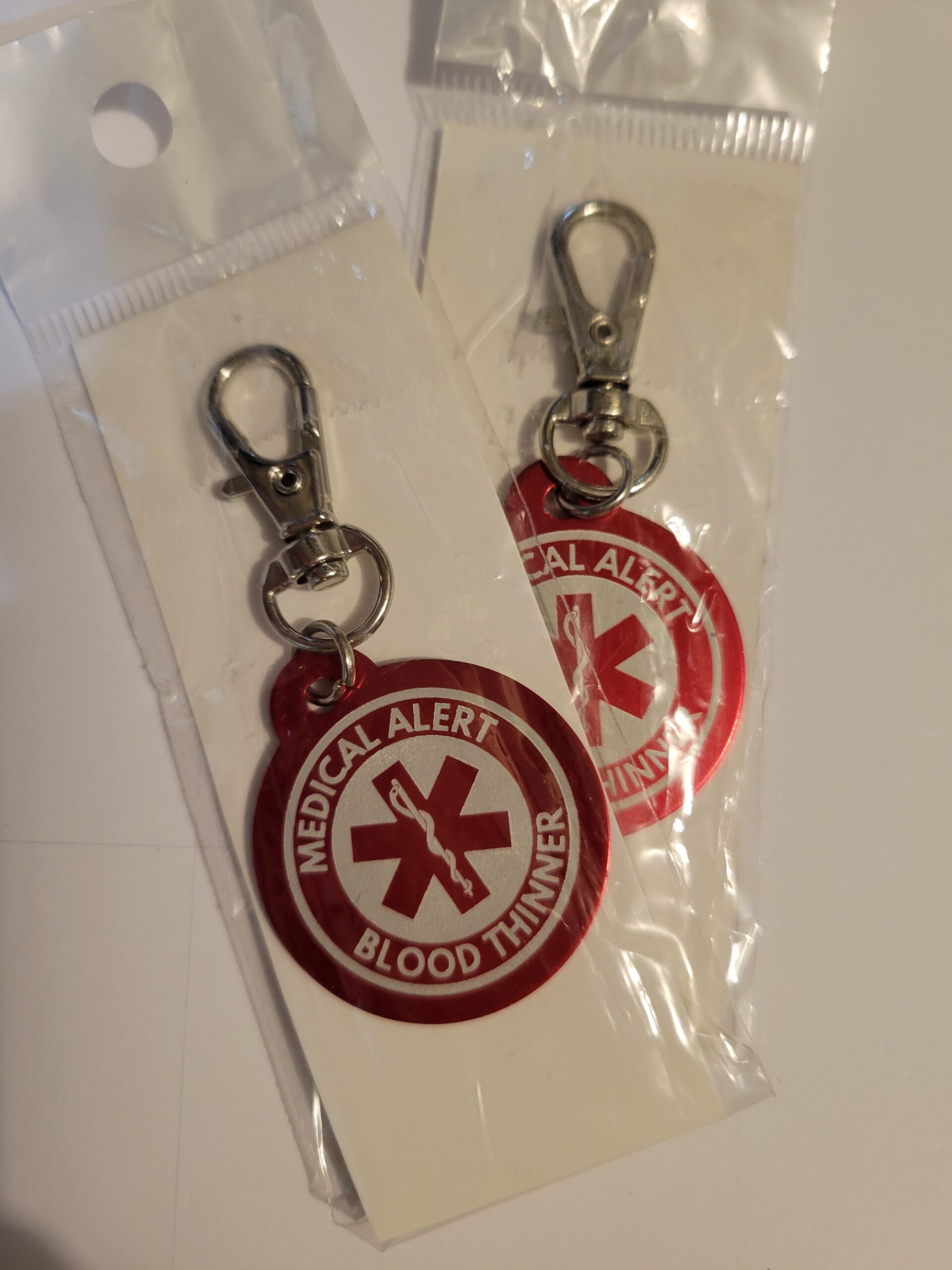 Tags: blood thinner, Keychain, Metal, Red